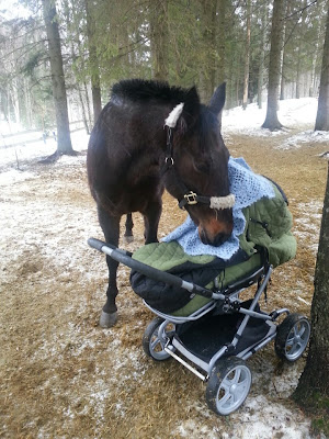 Olis mullakin varmaan paljon isompi härdelli jos pitäis hepat käyvvä muualla hoitamassa, se toisi huomattavasti enemmän lisämutkia. Meillä on tosiaan helppoa, kun pollet on omassa pihassa ja tykätään molemmat olla paljon kotosalla niin mies on usein minua auttamassa jos haluan ratsastella tai muuta pihalla puuhastella :) ja onneksi onska malttaa hyvin vaunuissa olla ulkosalla :) Oon kyllä etuoikeutettu ja kiitollinen siitä, miten jouhevasti kaikki on sujunut <3